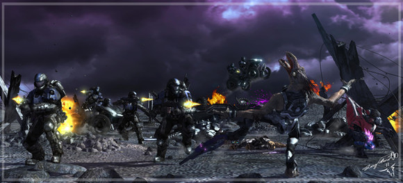 Decimation: Hi all, this was a depiction of the ship Echoes being sent to her grave on a unknown Planet.Her crew and passengers, those who survived would have to fight the covenant force that were relentlessly