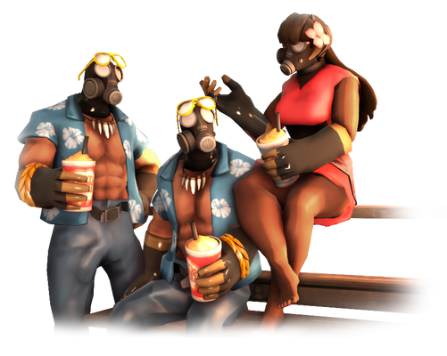 Because of illnesses and monetary commissions vs item commissions, I've been all over the place, but with the New Year I'm hoping to sort my shit together and get what needs to be done finished. 2015 will be a year of progress!This was a commission done for a fella who wanted an SFM based off League of Legends' Pool Party splash art. She also wanted Renekton as Heavy, Graves as Soldier, Lee Sin as Scout and Leona as Engie. I asked later if she wanted it similar in poses or similar with the pool party theme - I opted to push for the latter because of how fun I thought it would be to finally make the obligatory swimsuit/shirtless SFM art.
