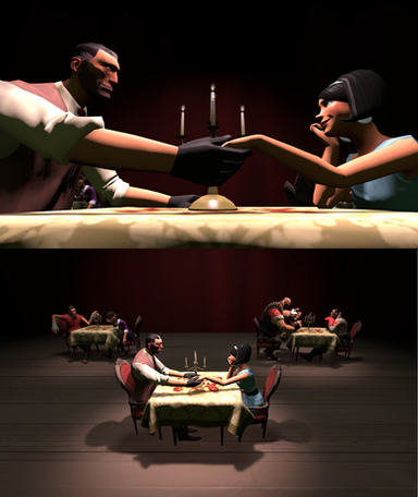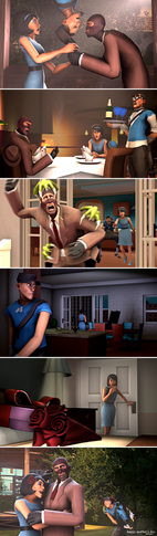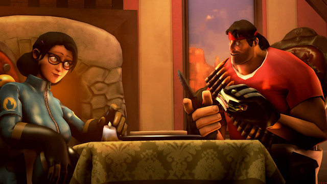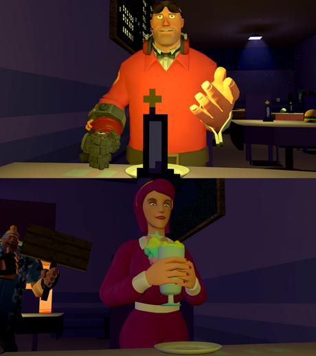 I think I know what you're talking about in terms of the subtle hinting/wishful thinking thing. That scene in Shadow Boxers where Heavy proclaims he will go on the mission with Miss Pauling and Soldier because Miss Pauling is going - I got some feel-good vibes there.
