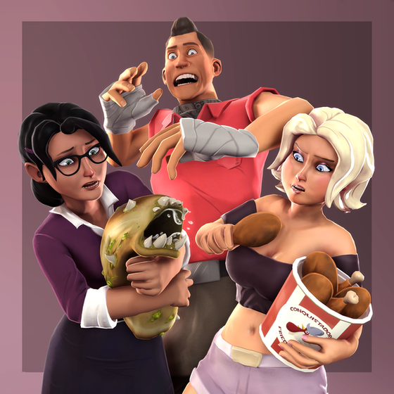Did another impromptu late-night SFM poster stream, this time with some 6v6 stuff since a while back I read about how there should be more 6v6-style artwork available (this one in the style of a polaroid).