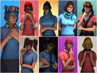 A set of wallpapers done for the current Femclass models available for Medic, Spy, and Sniper done by chemicalalia and roxwithallthepox .
