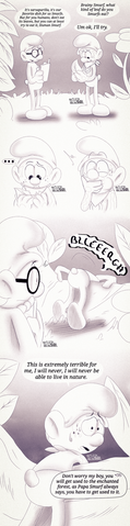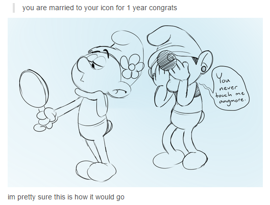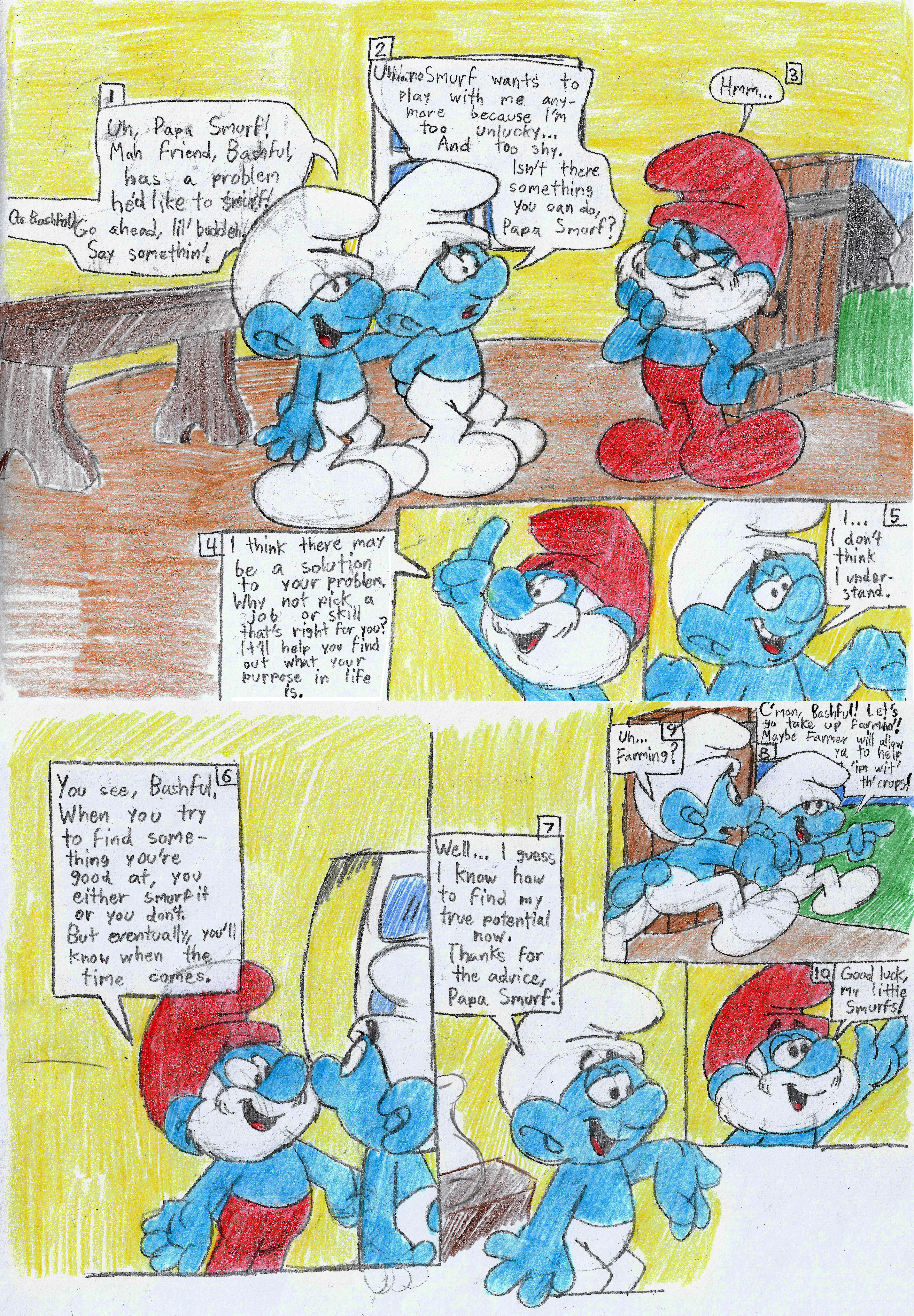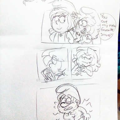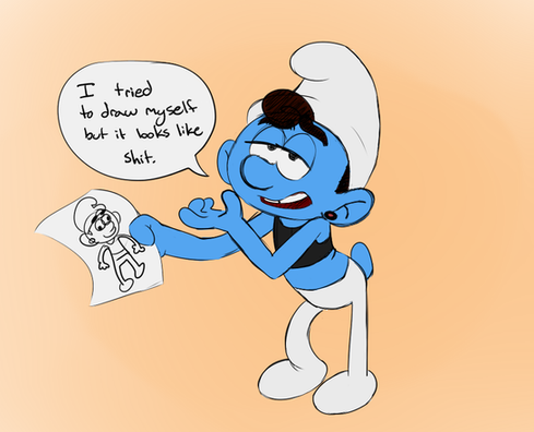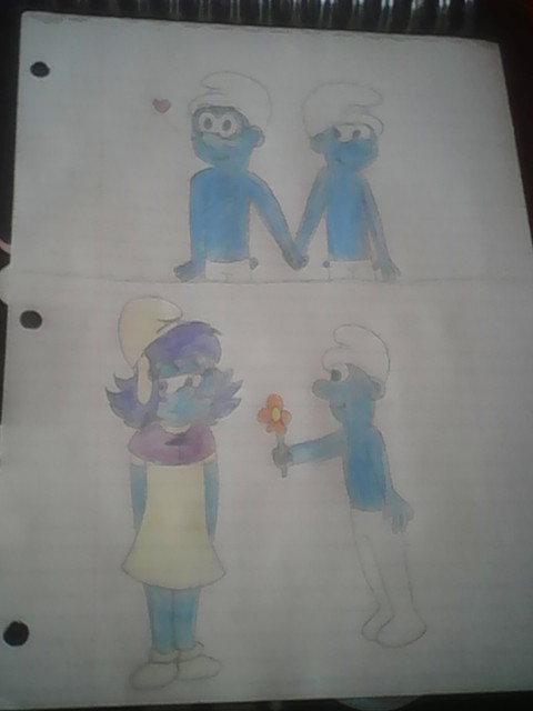 I would have done this digitally, but my tablet's broken. And I probably won't be getting a knew one for quite a while.BUT ANYWAY, I've fallen back into Smurf Hell, thanks to a friend I made rather recently. >w>