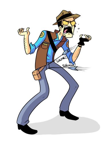 I love how the Medic's trying to cover up his face with his jacket, but his jacket's not long enough