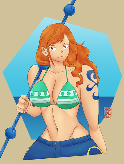 Robin in Nami's outfit from the Punk Hazard arc.It was an idea that came up in a youtube live stream and i gave it a try