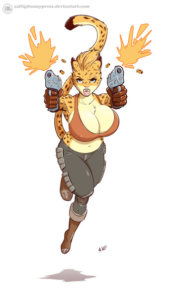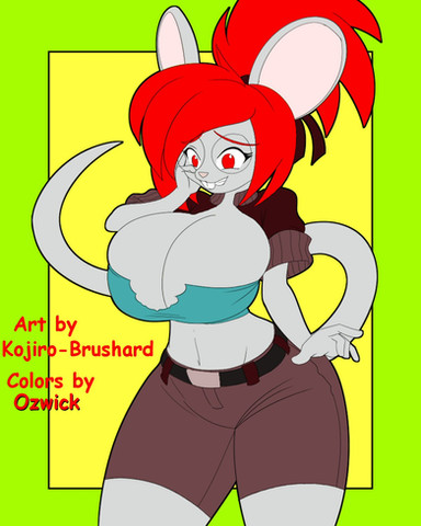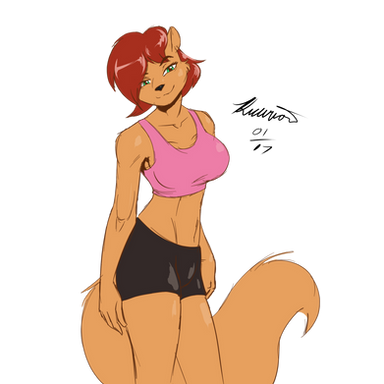 She blinded me with it (C'mon, am I the only one who thought of that joke up until now?!). All she needs are the glasses and the lab coat opened up to help show off her mammaries. Curvy, red-headed, freckled, busty squirrel girls are a big win.