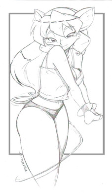 The Finished Sketch from my 2 page tutorial. I think her shirt's a little tight.Here are the tutorials in which I show how to draw her, as well as some tips and tricks on drawing your own cartoons.