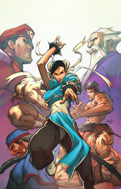 Artist: Jo ChenThis image was created as a powerfoil cover for Street Fighter issue #1. Since then it's been used as an iconic image for several other Street Fighter-related products including an art print, card game image and video game controller box.