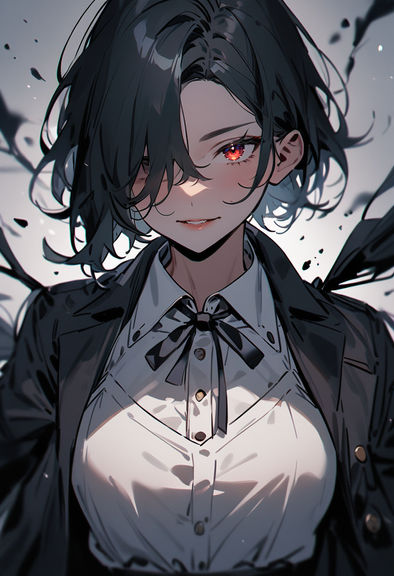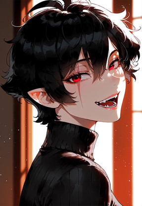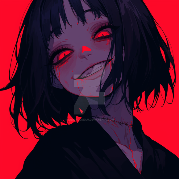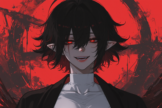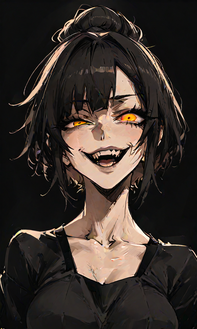 #fanart #portrait #blackhair #blackhairedgirl #collarbone #fangs #glowingeyes #maturewoman #messyhair #openmouth #pointyears #redeyedgirl #redeyes #robe #scar #shirt #shorthair #smile #smiling #smilinggirl #whiteskin #woman #shorthairgirl #lookingatviewer #messyhairgirl #whiteskinnedgirl #horizontalpupils