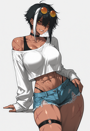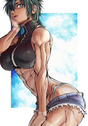 #bigass #blackhair #darkskin #female #girl #largebreasts #latina #lying #maturewoman #muscular #musculargirl #scars #smile #tanktop #thong #tomboy #woman #yelloweyes #1girl #muscularfemale #muscularwoman #thickthighs #darkskinnedgirl