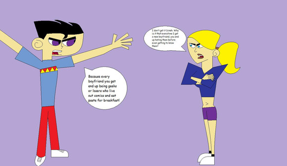 LOL! I guess Sam is right, she is no pushover! She did warn him long time ago like last year. I bet they're acting like they're still best friends only they're a couple. I bet Sam is going to drop him and Danny is hurt a little bit on his buttock. He'll be wondering why she did that and he'll go oh well! I love the way you drew this up. Keep it up!