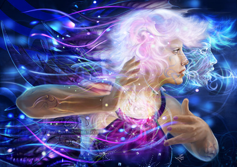 Absolutely beautiful! I love how the blue-tinted light catches along her hair and clothes. Her posture is also very natural looking, peaceful (w/her eyes closed and facial features relaxed) yet somewhat focused (w/ slight strain seen along her hands, back, and collar-bone area). The color mixture is breathtaking and your blending technique here is insanely good. I give you a big *thumbs up*, hon.