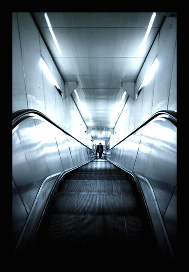 Ah, very very slick. It'll be sad to see these escolator photos come to an end... I am enjoying this and look forward to more. Haha this really has this gloomy feel to it, you are entering the abysss! love it!