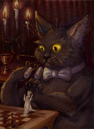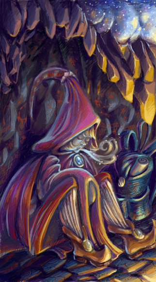 I really like this look because it reminds me of the Corpse Bride. The way the horse looks a bit skinner than usually is a really unique and nice touch to it. The shading is stunning and emphasizes that look. It also makes the picture 'pop' and makes it more mystical. The man's hair is also well done. Its lighting isn't everywhere. It is just right.