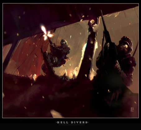 WoW. You sure can draw planes! And I almost can see them moving.. o.o That strong yellow spot of light really caughts your eye and brightens the pic and makes it more exciting Very good job!