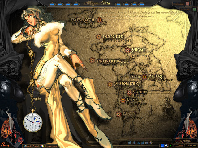 Update of my Aqua theme for Talisman 2.7. Used icons of different authors. To create a new icon in the dock just drag&drop a file there. New icon will be created in the end of list!Included 2 wallpapers: Classic OSX and Jaguar.