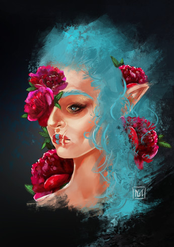 This is just gorgeous... how the roses bloom from her skin is perfect. They remind me of some infection or rash. Maybe a pimple? XD That probably sounds stupid... either way, beautifully done.