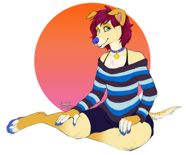 ProfileThe calender commission for October. The month of goblins and spooks will feature R-U-B-Y's dog character. I didn't ask what species she is, but I'm pretty sure she's a golden retriever.