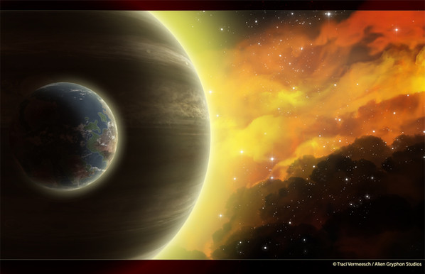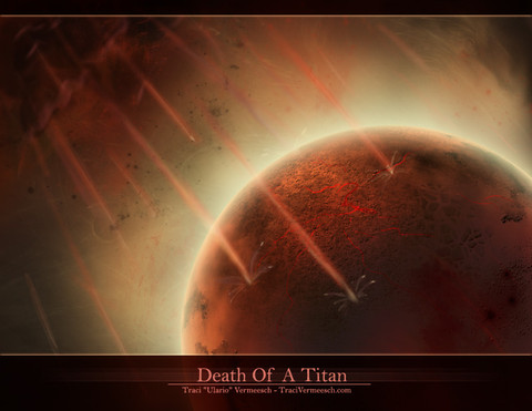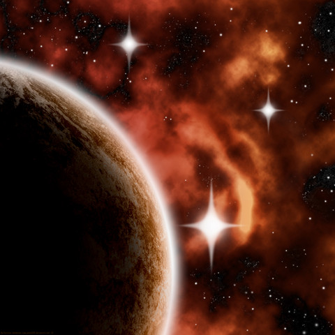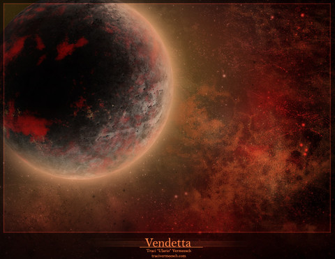 I started doing this picture near the end of my Graphic Design class while I was bored. It's a bad idea for my instructor to let us bring our laptops to class. At first it was going to be done in green tones, but I decided to go with burgandy, red, and orange tones instead because it's different.I was a bit indescisive about what type of planet (if any) to put in... my first instinct was a gas giant in red tones but decided a crusty molten planet looked better.