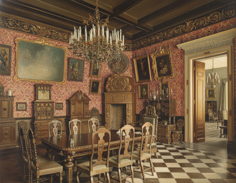 The Queluz National Palace (Portuguese: Palácio Nacional de Queluz) Queluz - PortugalWith its neo-classical decoration, this room has walls clad with panels of oil on canvas depicting capricci, Italian ruins from Antiquity, probably the work of the Italian scenographer Giovanni Berardi and inspired by the paintings of Giovanni Paolo Panini (1691-1765).