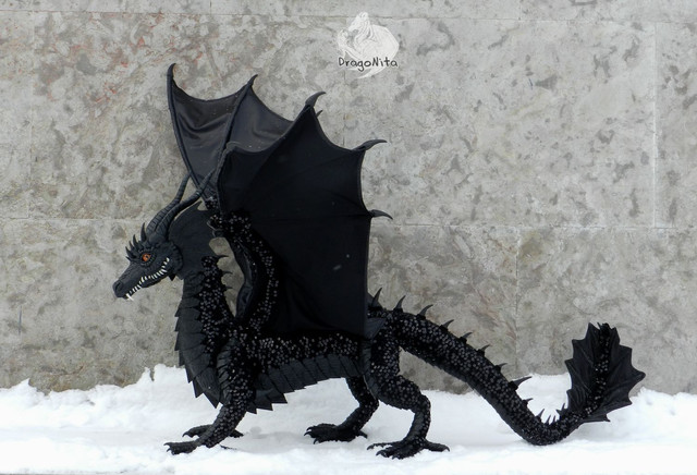 Wow... My first bigger felt sculpture was a black dragon too But that was an epic fail D: sooo... I dont have it posted here... I used Black and red combination and it was about 30cm with the tail, so your dragon 70 cm... Omg, that is big!