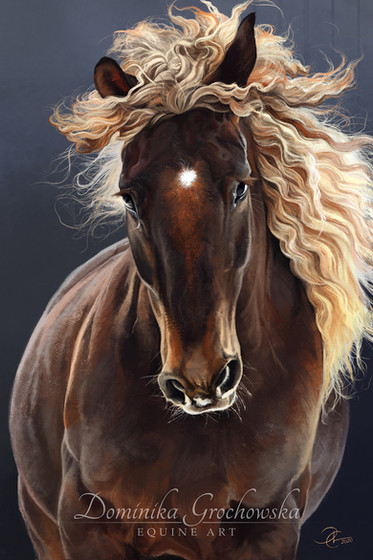 This portrait is just lovely β₯ I loove how these manes flow and the cute look that this chestnut has. Also the blue/greenish background combines with the coat perfectly!Β