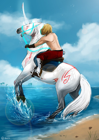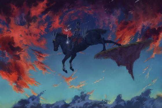 I like how the angle of the horizon and the clouds make the scene so dynamic, there's a feeling of inevitable force as the horse moves forward, it may as well be moved on by gravity. The shading and lighting on the horse itself is also very good!