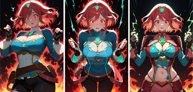 #female #femalemuscle #gerudo #hourglassfigure #hourglassshape #tetra #witch #zelda #hourglassexpansion #rippingclothes #tearingclothes