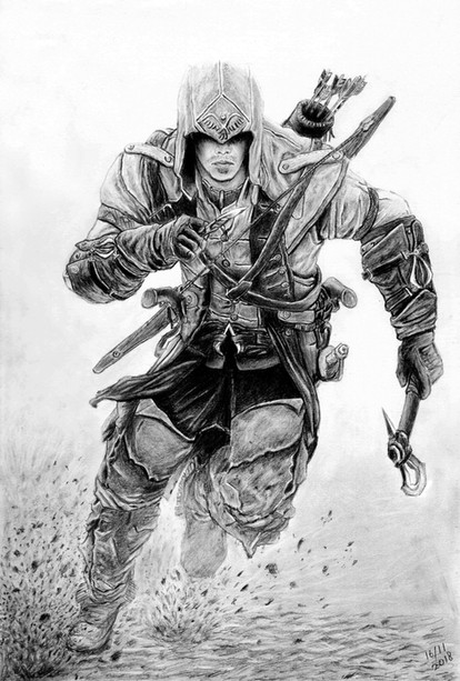 Altair in my Trio of Assassins. Here are Ezio [link] and Connor [link]This was done with mostly charcoal and the bit of black ink.
