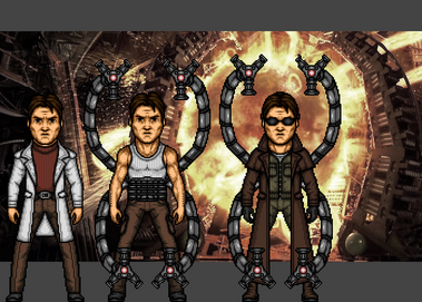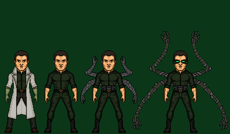 Otto Octavius was Norman Osborn's right hand man at Oscorp, with the two having been friends since college. When Norman became obsessed with genetic engineering, Otto feared that would be the end of his mechanical engineering, but found he still had a place with Norman, helping him design what would become the Glider and some of the Goblin tech, along with gear for the Scorpion and others.The use of four mechanical arms aided Octavius in his work, but the birth of the Green Goblin meant the sabotage and destruction of Octavius' lab. Left for dead, he was found barely alive, with his mechanical tentacles fused to his spinal cord and his eyes damaged. Furious over what had happened, Doctor Octopus sought revenge on Norman Osborn and Spider-Man, the two he blamed for his condition. He also sought to continue his research, believing he could show the world his worth with his inventions, and prove he was no mere man.