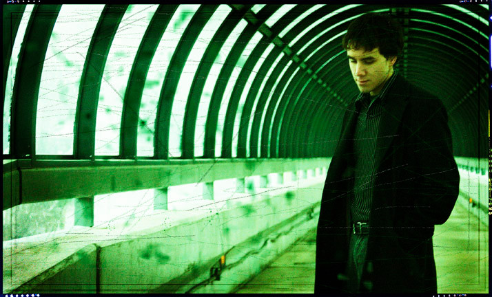 beyond which is an embankment rolling down in darkness to the