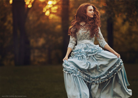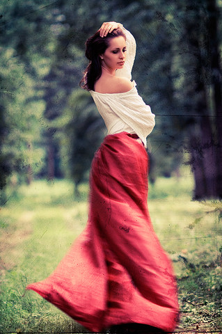 This is sooo romantic and beautiful. I love the composition, the colors, the focus...and her clothes!!