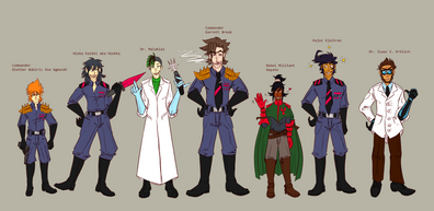 He is a proud Cavallian and dislikes having to work with non Cavallian soldiers. Wears glasses to hide his synthetic eyes.