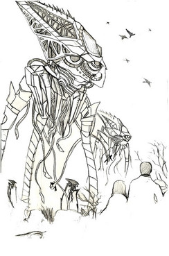 OOOO! ^-^ My fav Metriod Boss! Awesome! That horn thingy on the back of his head seems a tad strange, but it may just be me. @.@ " I've gotta boost my monster drawing skill somehow. There are so many good ones all over the place, they're makin me feel insignificant! XD lol