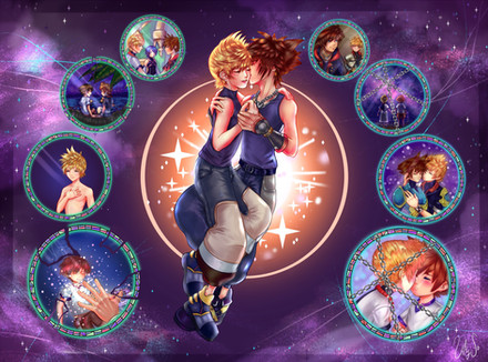 Piece made for a zine. I was hoping these two could have been siblings 😭 Was finished before the final KHUX Updates. Sad they never got to be bros 😭😭😭Related content