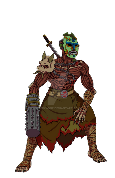 Tsunami Rami is a 5th generation pro wrestler. When he dawns his ancestral tiki mask, he's granted the combined strength and experience of each of his pro wrestling progenitors. So basically the Rock haha... Just wanted to showcase my character contribution for the collab I posted earlier..