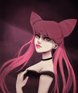 ik mis ook de pluizige haartjes die nooit goed willen zitten. Bijvoorbeeld bij de voorste plukken die over haar gezicht valt. dat zijn twe grote massieve plukken. pak een hele kleine brush(missch iets van 2 of 3? hangt er eigenlijk vanaf hoe groot je plaatje is) met een iets lagere opacity.