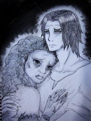 Close! Galbatorix and brom. (this was before i realized galbatorix looked much different than i thought he would) and yes that is katrina! she was the last one i drew so she indeed looks rushed. (i also dont fancy her.). Oh and the one next to Angela is supposed to be elva, (which i imagined looking like toph from avatar.) But she also came out not quite as expected... I did this entire thing in ballpoint pen, and i dont own white out, so i couldnt really edit/fix anything