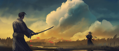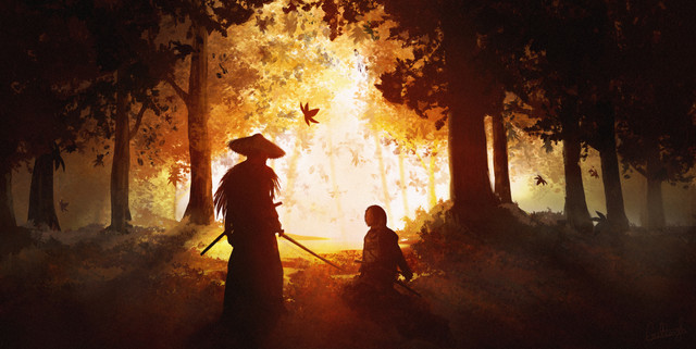#spring #battle #dualswords #greenforest #greengrass #lake #samurai #showdown #sunshine #trees #treesforest