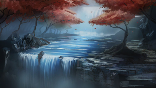 #lightrays #digitalart #digitalpainting #environment #grass #naturelandscape #rocks #waterfalllandscape