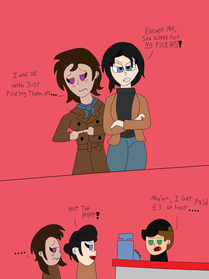 Here is a little comic of my OCs Trina and Otto, based on an... incident that happened with my mom and uncle years ago.