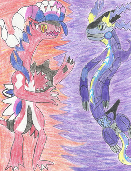 There was a Pokemon Presents the other day! It finally had the sort of Scarlet and Violet DLC info I was waiting for! To celebrate here are two long bois, Raging Bolt and Archaludon