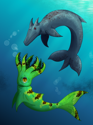 I wanted toΒ do something for Spectember before the month was over, and my Midnightverse project has a ton of more fantastical takes on spec evo concepts, so here are two of them - the Swamp Dragon and Swamp Leviathan, descendants of Florida alligators and pythons!