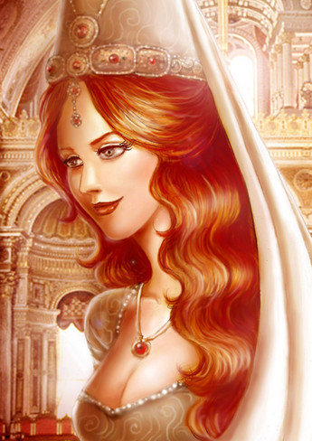 This is still one of my favorite pieces. The queen has such a kindly warm glow. She is especially comforting and sweet. She has the mature look of a woman but the kindness of a princess. Most people portray queens as old or evil so this is a nice change. She looks almost virginal with her soft white veil. Also, I wish I could draw hair like that.