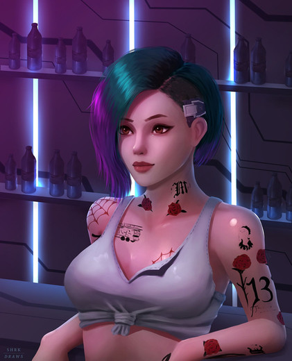 #digitalart #fanart #characterdesign #videogamefanart #portrait #digitalpainting #cyberpunk #tattoo #judy #cyberpunkgirl #cyberpunk2077 #cyberpunk2077fanart
