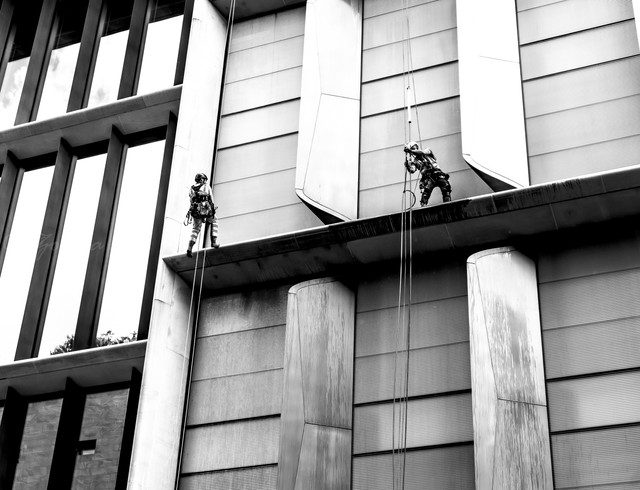 If my boss caught me washing the windows like this, he'd kill me dead.