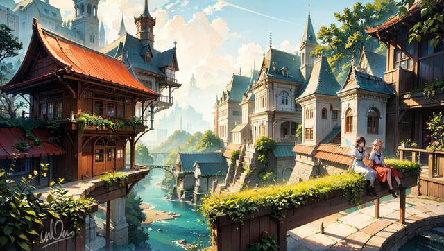#conceptart #fantasy #orangeblue #reflection #town #townscape #townscenery #reflectionwater #conceptfantasy #ai_artwork #stablediffusion