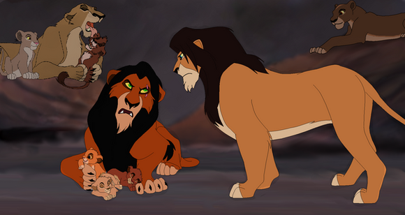 "Are we going to talk to the hyenas again?" Jahara asked, staring up at his mother from his position on his back. He kicked out with one paw, knocking Rehema off him. The younger cub shook out his mane and took a step back to let the queen speak to her cubs.