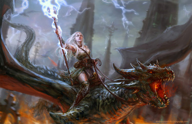 WIP commission of a friend's fierce female Elven warrior riding her young dragonΒRelated content