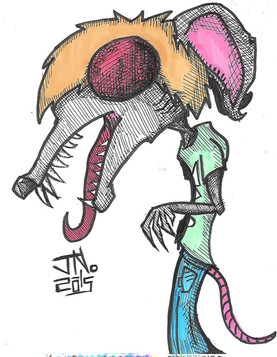 Welp... The mutant beryl I drew for the for the Beryl Tips animation kinda grew on me...(insert joke about mutant growth) so much infact that I'm making him a main character in the whole Uncle Monkey thingHis name as u might have guessed is Gumboot and he belongs to Rabid (which would explain y he's messed up) Umm yurp!