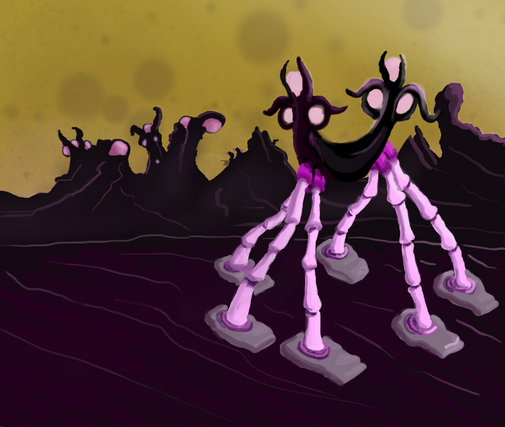 the critters kinda remind me of invader zim. in a good way... *eyes the pic* is that one kicking the... er... monolith, or jumping off it?